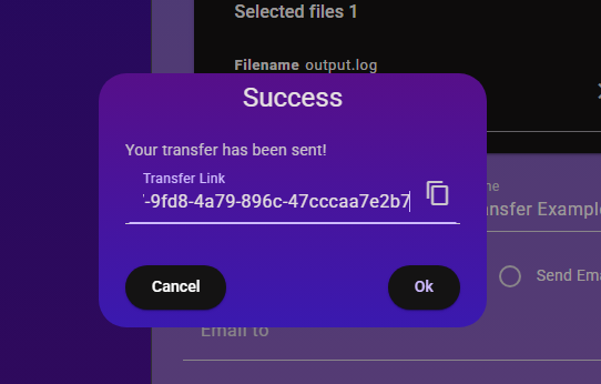 2. Copy Link: this button will copy the transfer link to your clipboard
