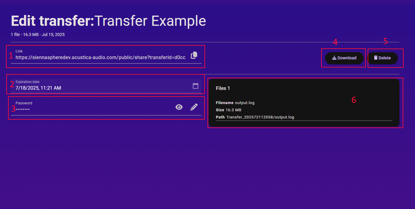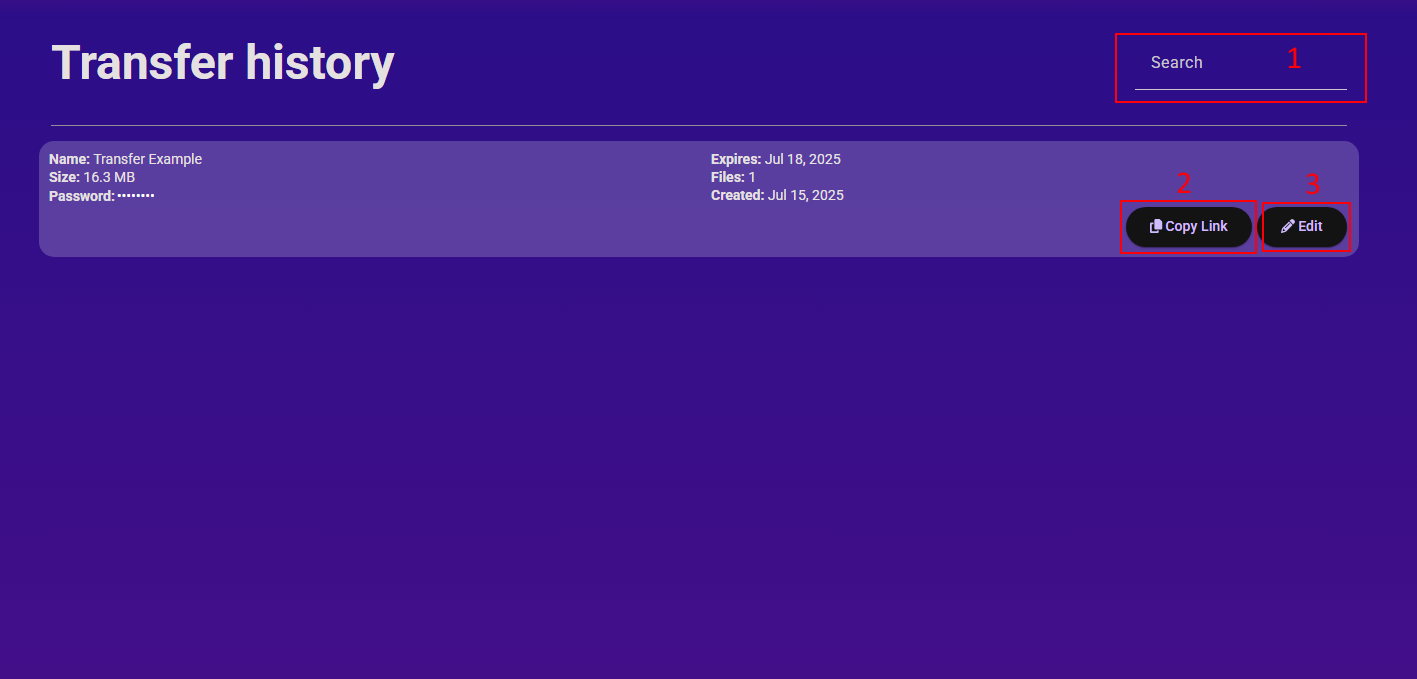 2. Expiration date: here you can edit the expiration date of your transfer with limits depending on your subscription tear.