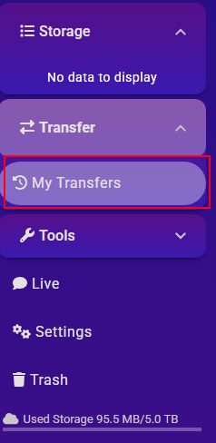 10. Transfer: this button will effectively start uploading the data and create the transfer.