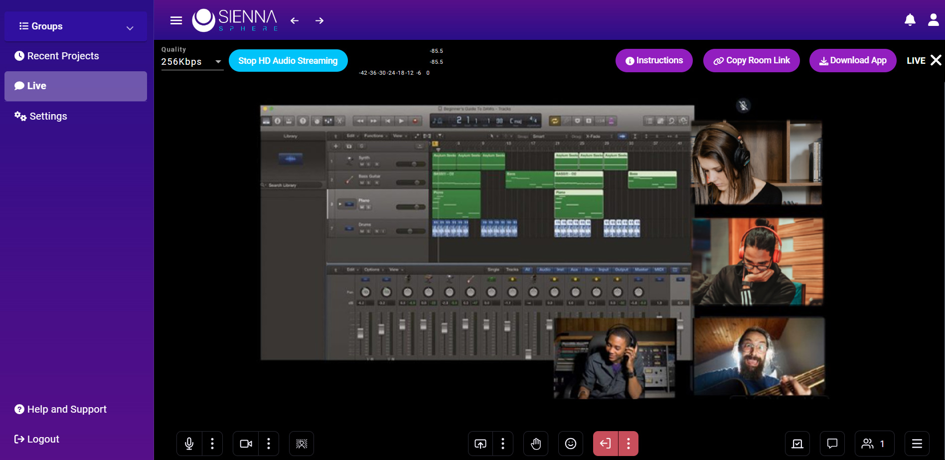 Sienna Sphere Live is built specifically for music creators and educators. It combines bi-directional Ultra HD audio streaming and video conferencing in one browser-based platform.